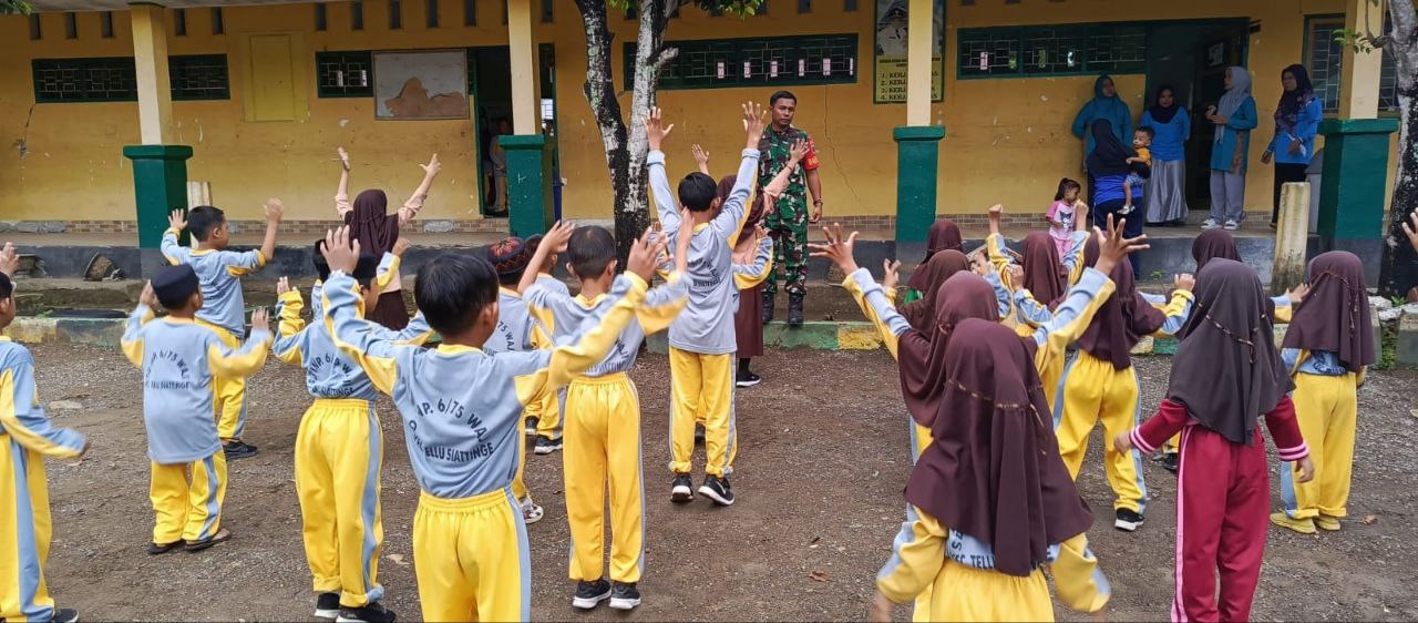 Bangun Karakter Anak Bangsa, Aksi Babinsa Tellusiatinge Kodim 1407/Bone Kobarkan Semangat Siswa SD Lewat Senam Pagi