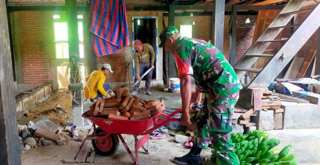 Optimalkan Fasilitas Publik, Koramil 1407-19/Kahu Kodim Bone Gelar Kerja Bakti Di Lapangan Sepak Bola Palattae