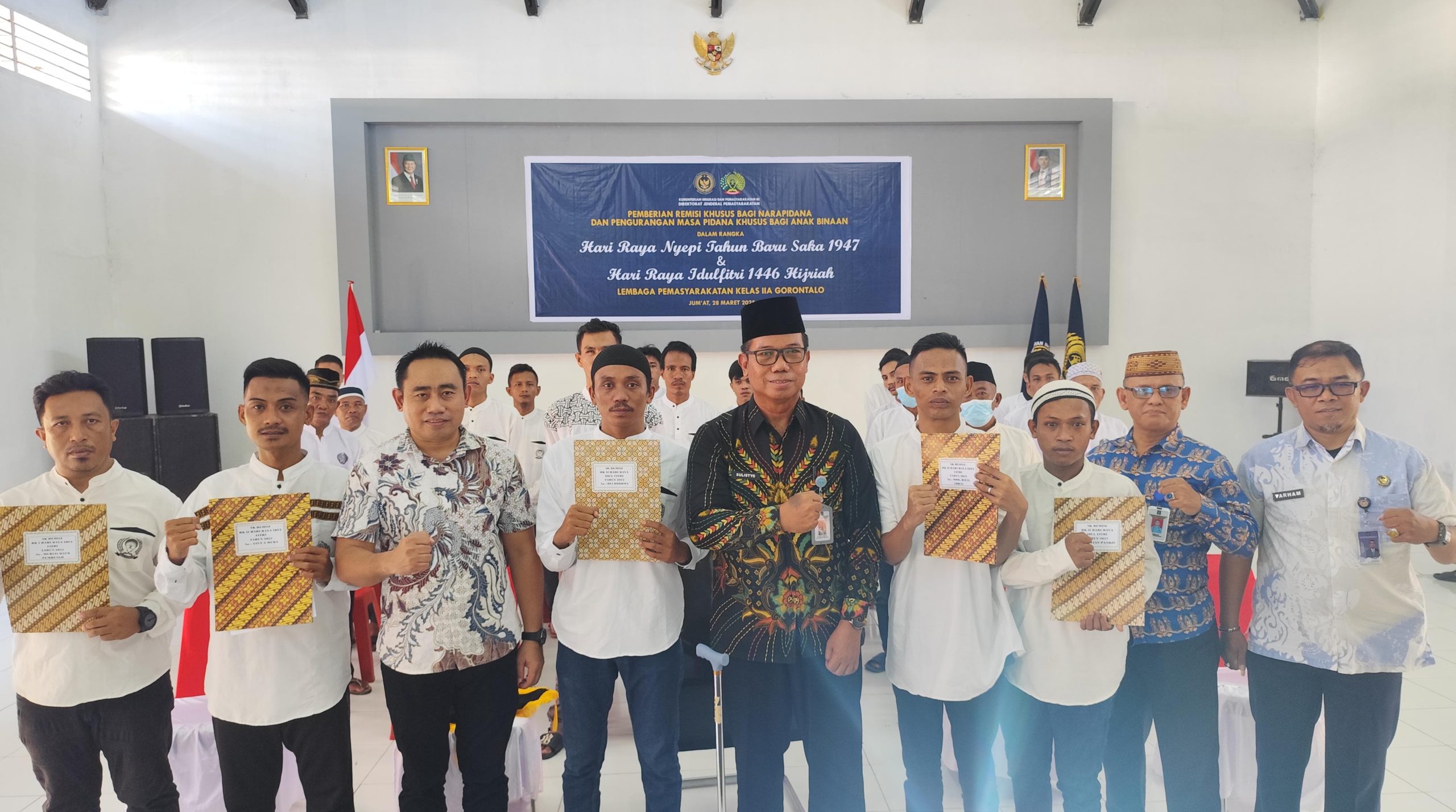 Kegiatan penyerahan remisi ini dilaksanakan serentak di seluruh Indonesia melalui aplikasi Zoom Meetings. Di Aula Lapas Gorontalo, kegiatan ini diikuti oleh Kepala Lapas Gorontalo, Sulistyo Wibowo, bersama dengan Kasi Binadik, Ka. KPLP, Kasubsi Bimkemaswat, JFU, dan perwakilan warga binaan. Momentum ini menjadi momen penuh harapan bagi para narapidana menjelang hari raya.