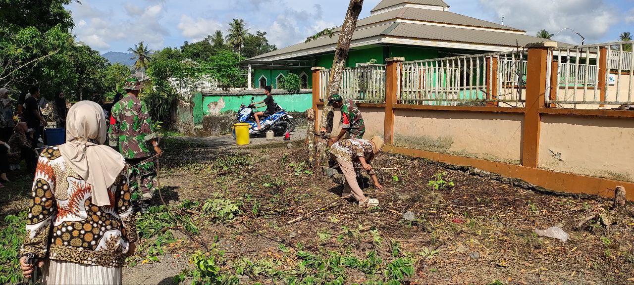 Kegiatan ini melibatkan unsur TNI dan tenaga kesehatan setempat, dengan sasaran pembersihan halaman, pemotongan rumput liar, serta penataan lingkungan sekitar Puskesmas agar tetap bersih, asri, dan nyaman bagi masyarakat yang datang berobat.