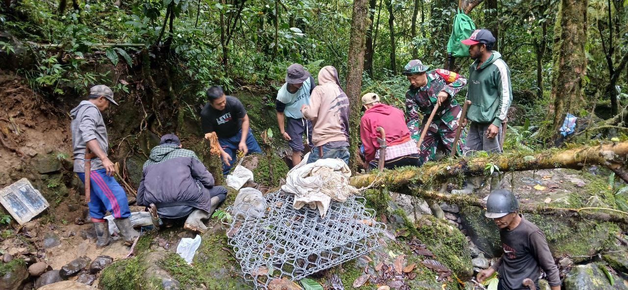 SINJAI. Babinsa Desa Barambang Koramil 1424-06/Sinjai Borong, Serka Syamsuddin, bersama Kepala Dusun dan masyarakat setempat, melaksanakan kegiatan karya bakti dengan sasaran perbaikan bak penampungan air bersih yang selama ini mengalami kerusakan, yang menyebabkan kesulitan bagi warga dalam memperoleh pasokan air bersih bertempat Dusun Balang, Desa Barambang, Kecamatan Sinjai Borong, Kabupaten Sinjai, Senin (13/01/2025)