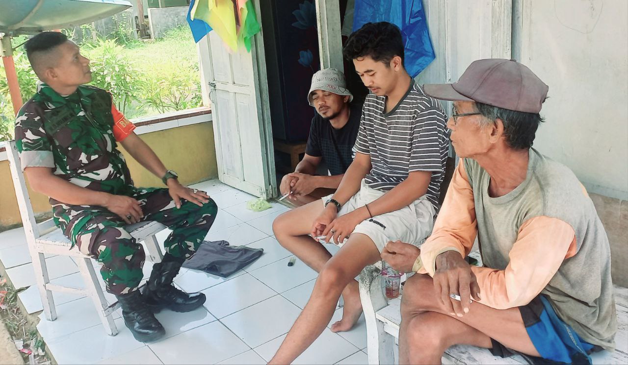 BONE – Babinsa Koramil 1407-19/Kahu Serda M. Johannis melaksanakan anjangsana sekaligus Komunikasi Sosial (Komsos) dengan Tokoh Masyarakat dan Tokoh Pemuda di Desa Batulappa, Kec. Patimpeng, Kab. Bone. Sabtu (04/10/25).