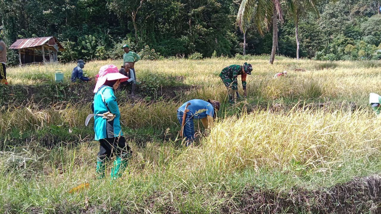 Kegiatan panen padi secara manual ini dilakukan secara gotong royong oleh Babinsa dan petani setempat, yang bertujuan untuk memaksimalkan hasil panen serta mempererat hubungan kemanunggalan antara TNI dan rakyat.