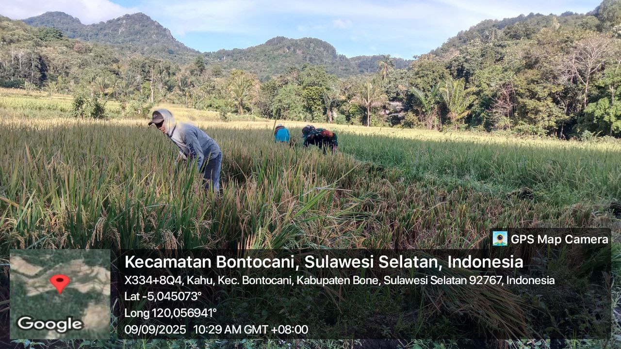 BONE – Wujud nyata kepedulian terhadap para petani, Babinsa Koramil 1407-20/Bontocani Sertu A. Riady turun langsung ke sawah membantu proses panen padi secara manual di Kelurahan Kahu, Kec. Bontocani, Kab. Bone. Selasa Sore (09/09/2025).