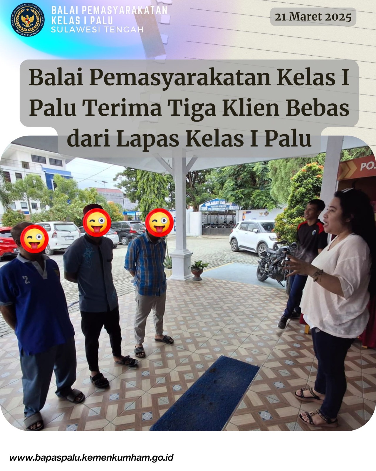 Balai Pemasyarakatan Kelas I Palu Terima Tiga Klien Bebas dari Lapas Kelas I Palu
