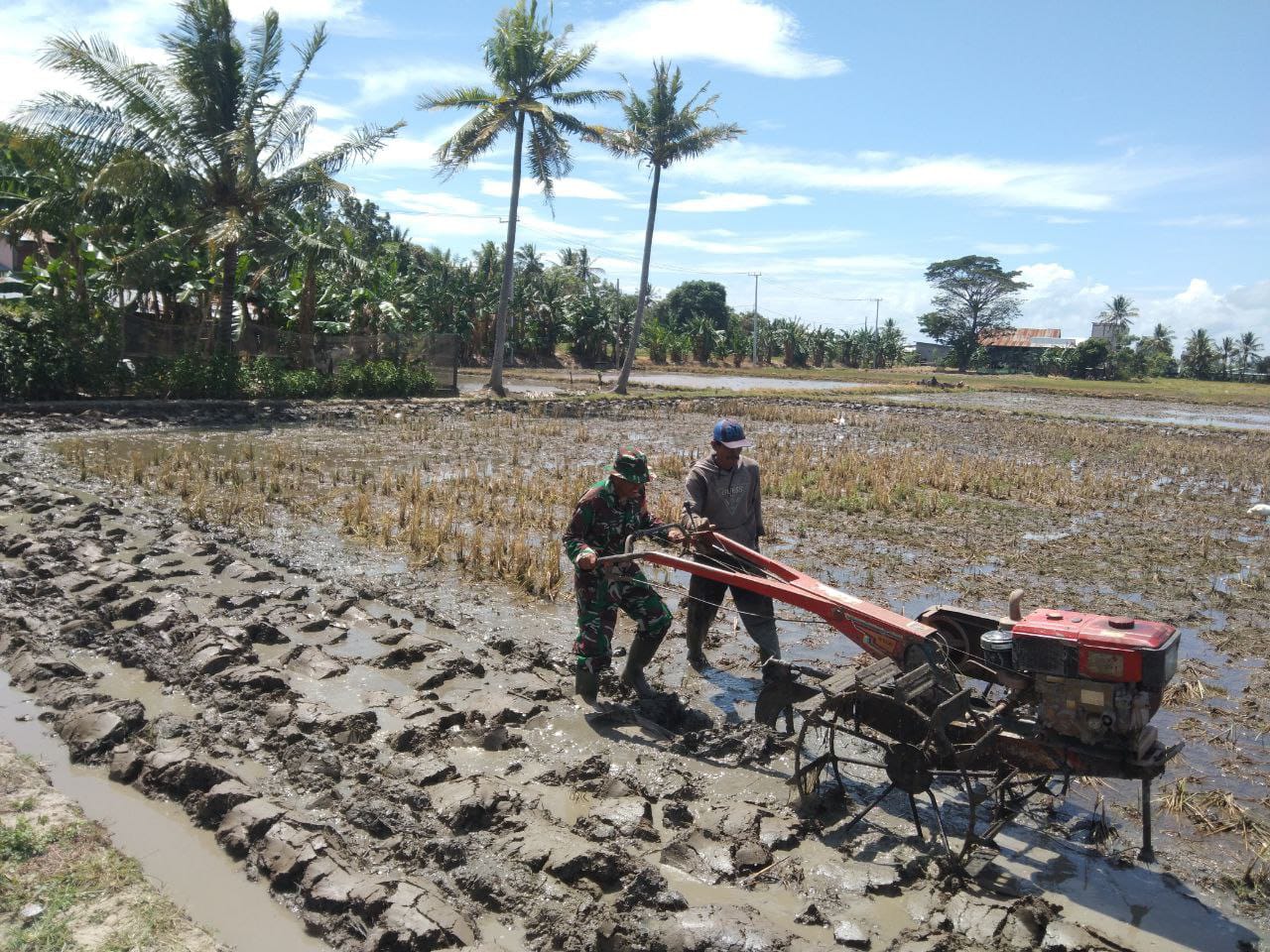 Dukung Ketahanan Pangan, Babinsa Koramil-06 Kodim 1404/Pinrang Bantu Petani Garap Sawah