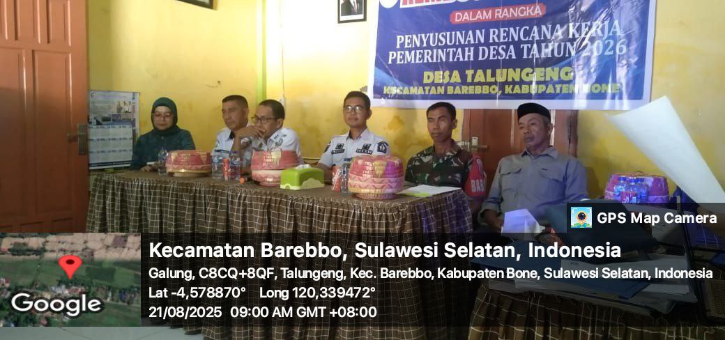 BONE – Babinsa Koramil 1407-11/Barebbo Serma Salama hadiri musyawarah desa dalam rangka Rembuk Stunting dan rapat penyusunan rencana kerja pemerintah desa (RKPDes) tahun anggaran 2026 yang bertempat di Aula Kantor Desa Talungeng Kec. Barebbo Kab. Bone. Selasa (21/08/25).