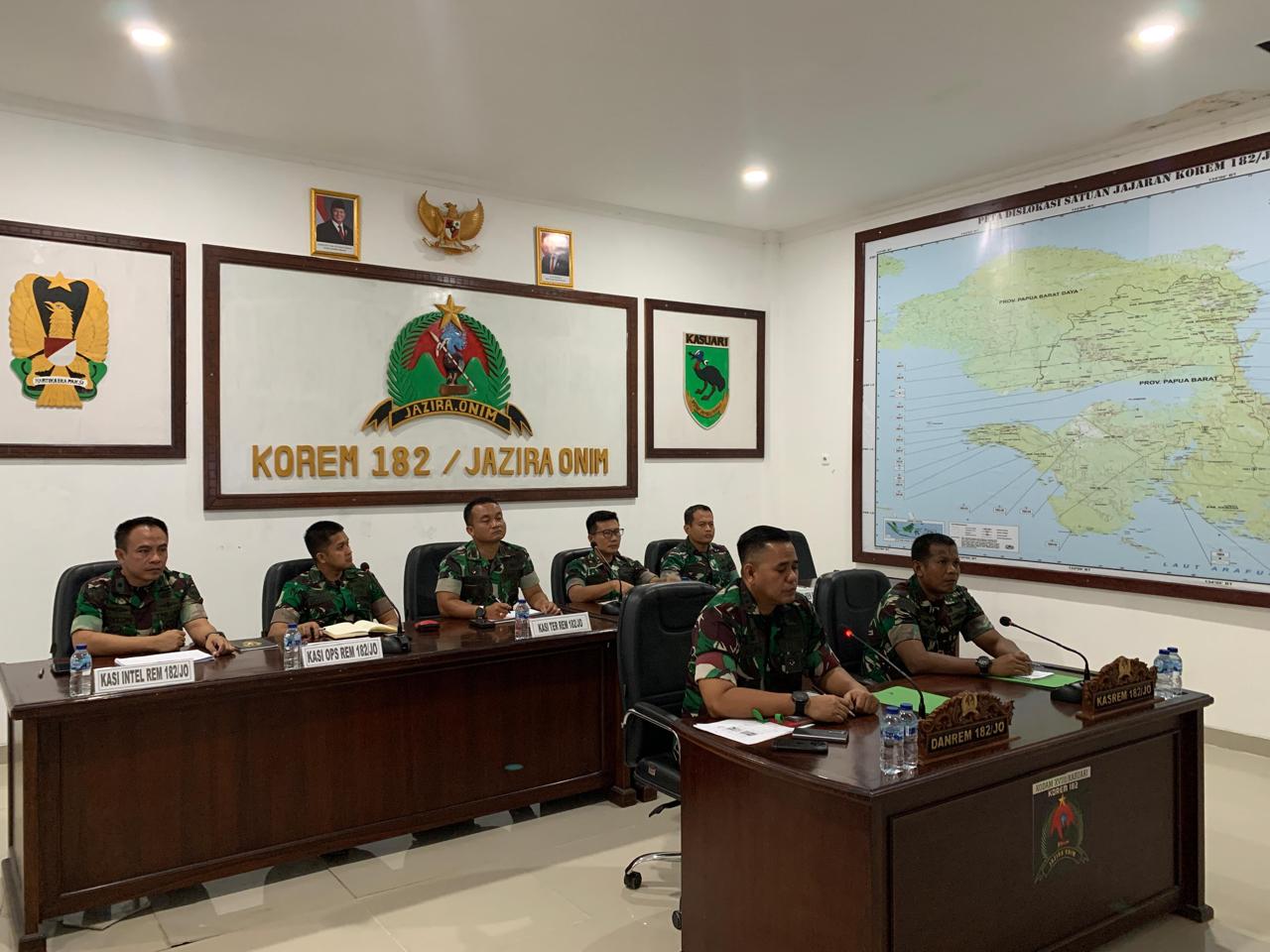Bertempat di Ruang Vicon Korem 182/Jazira Onim, Komandan Korem 182/Jazira Onim, Kolonel Inf Aswin Kartawijaya di dampingi Kasrem 182/JO dan Para Kasi Korem 182/Jo hadiri Entry Briefing Pangdam XVIII/Kasuari, Mayjen TNI Jimmy Ramoz Manalu, S.Hub.Int., M.H.I, pada hari Senin, (27/1/2025)