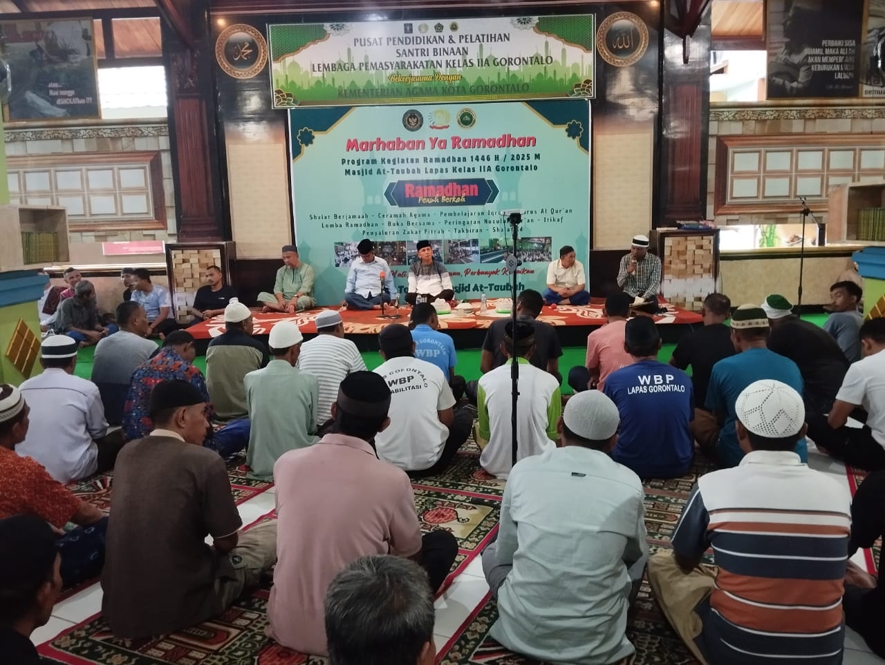 Pengurus Badan Ta’mirul Masjid At-Taubah Lapas Kelas IIA Gorotalo selenggaran Tauziah dan Buka Puasa Ramadhan 1446 H bersama ratusan WBP di Selasar Masjid At-Taubah Lapas Kelas IIA Gorontalo, dan kali ini menghadirkan Ustadz AKP. Muhammad Atmal Fauzi, SH sebagai Penceramah. Pada kesempatan tersebut beliau menyampaikan ceramah dengan tema “Empat Golongan yang Dirindukan Surga”, sebagai bentuk motivasi kepada para WBP untuk senantiasa meningkatkan amal ibadah selama bulan suci Ramadhan.