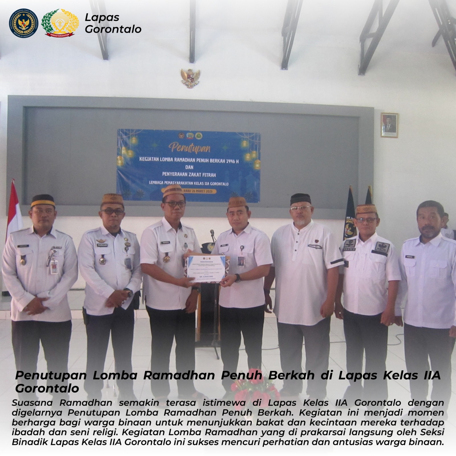 Gorontalo, 26 Maret 2025 – Suasana Ramadhan semakin terasa istimewa di Lapas Kelas IIA Gorontalo dengan digelarnya Penutupan Lomba Ramadhan Penuh Berkah. Kegiatan ini menjadi momen berharga bagi warga binaan untuk menunjukkan bakat dan kecintaan mereka terhadap ibadah dan seni religi.