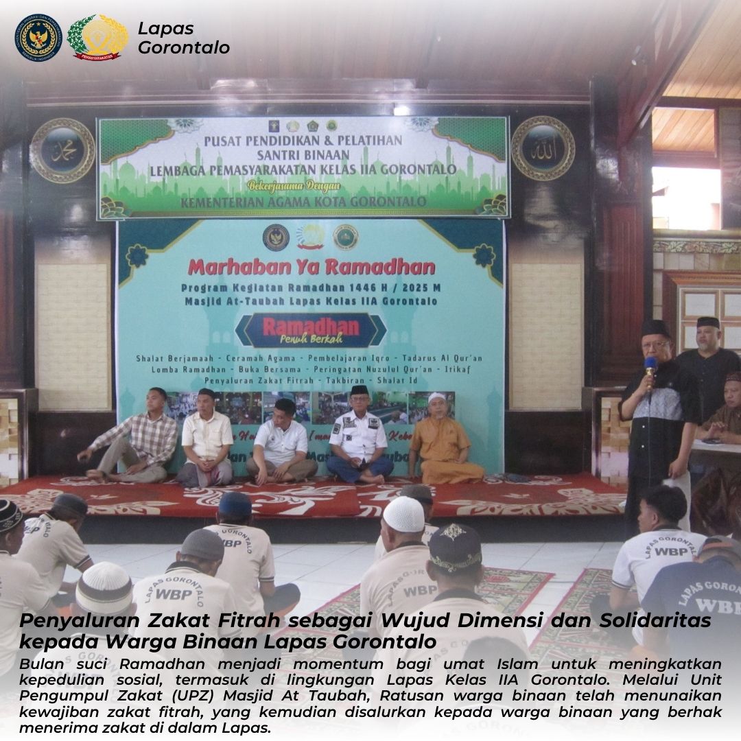 Penyaluran zakat fitrah ini menjadi bagian dari rangkaian kegiatan Ramadhan di Lapas Gorontalo, yang tidak hanya berfokus pada pembinaan spiritual, tetapi juga membangun nilai-nilai solidaritas dan kebersamaan di antara warga binaan.