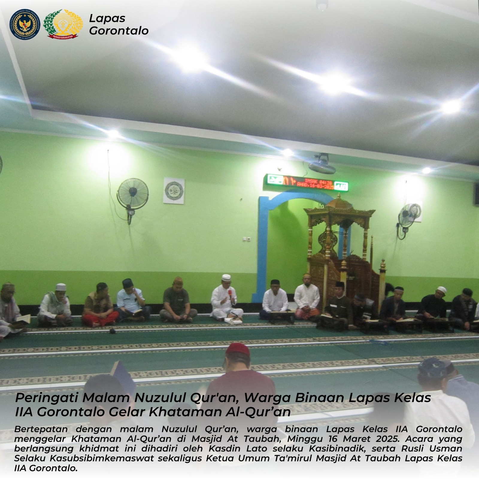 Pada kesempatan lain, Kepala Lapas Kelas IIA Gorontalo, Sulistyo Wibowo, menyampaikan harapannya agar kegiatan keagamaan seperti ini dapat memberikan dampak positif bagi warga binaan. “Semoga Khataman Al-Qur’an ini menjadi awal yang baik bagi mereka untuk terus memperbaiki diri selama di dalam lapas”.
