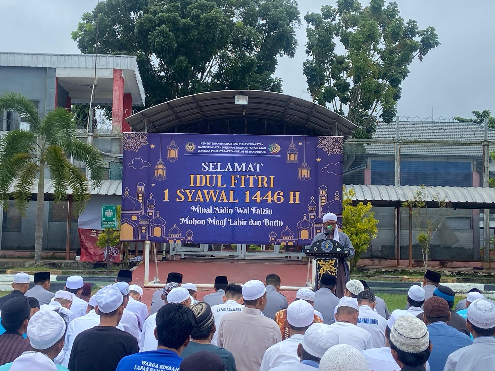 Kepala Lapas Banjarbaru, I Wayan Nurasta Wibawa, menyampaikan Salat Id digelar agar Warga Binaan dapat merasakan suasana Idulfitri layaknya di luar Lapas. “Meski berada di dalam Lapas, Warga Binaan memiliki hak yang sama untuk beribadah. Maka dari itu, lapangan ini kami siapkan untuk merayakan kemenangan dan kebahagiaan hari raya Idulfitri dengan Salat Id berjamaah,” ucapnya.