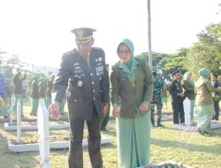 BONE – Sambut HUT TNI ke 80, Dandim 1407/Bone Letkol Inf Laode Muhammad Idrus didampingi Ketua Persit KCK Cabang XXV Ny. Nur Fitrianti Laode mengikuti upacara ziarah rombongan dan tabur bunga yang dilaksanakan di Taman Makam Pahlawan (TMP) Watampone, Kel. Biru, Kec. Tanete Riattang, Kab. Bone. Jumat (03/10/25)